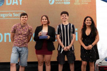 Ganadores del programa Despega Usach 2022 en la categoría Innovación Social, las/os ingenieras/os ambientales Ámbar González y Sebastián Armijo, y la estudiante de Ingeniería Comercial, Melanie Carroza, obtuvieron el preciado galardón junto con las asesorías y mentorías del programa.