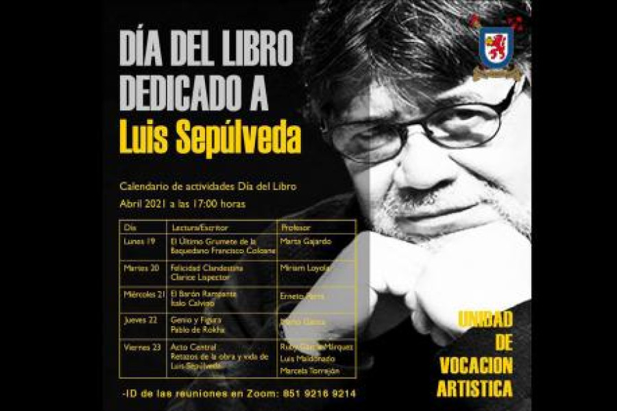 A un año del fallecimiento del destacado escritor, periodista y cineasta chileno, Luis Sepúlveda, y bajo el contexto de la celebración del Día del Libro, la Unidad de Vocación Artística del Departamento de Gestión del Deporte y Cultura realizará un ciclo de eventos vía Zoom recordando su obra y otorgando un espacio de reflexión, lectura y creatividad familiar para la comunidad universitaria.