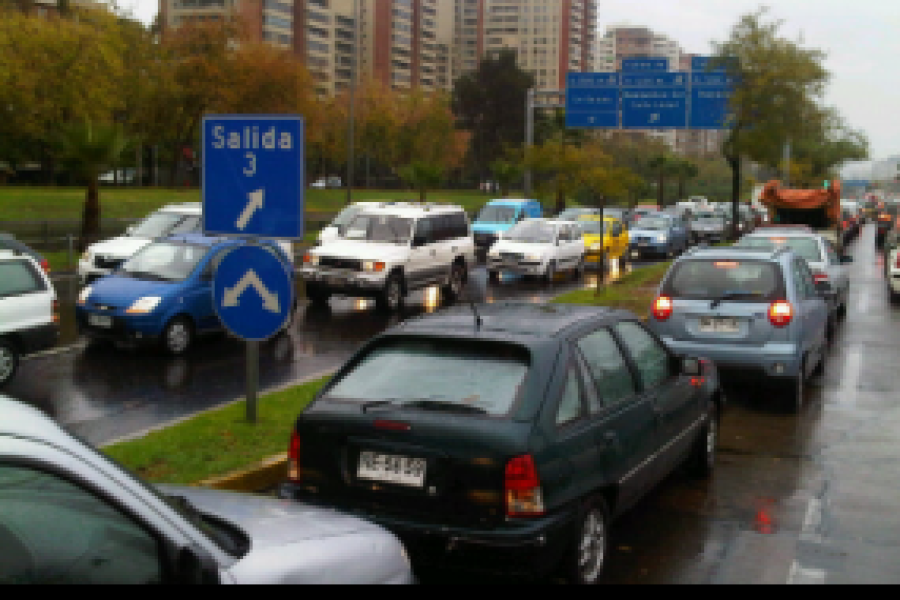 Las intensas lluvias que afectaron la semana recién pasada al Gran Santiago dejaron una vez más en evidencia el problema de congestión vehicular que se agrava con este tipo de episodios. Las principales arterias como la Alameda Bernardo O’Higgins, Providencia, Américo Vespucio, Avenida Kennedy y Alonso de Córdova, se vieron colapsadas según informes de la Unidad Operativa de Control de Tránsito.En el programa “Usted tiene la palabra”, de Radio Universidad de Santiago (94.5FM, 124 AM y www.radiouscah.cl), conducido por Pablo Medel y que se transmite de lunes  a viernes de 9 a 10 horas, el ingeniero civil y experto en transporte y seguridad vial del Plantel, Alejando Torres, señaló que “la planificación a la hora del taco no tiene ningún efecto si todos entran y salen del trabajo a la misma hora. Las medidas van en la dirección correcta, pero no logran mayor efectividad porque el rango horario es muy reducido. Se crean cuellos de botella en las calles principales porque pasan de cinco pistas a tres e incluso a dos, en algunos tramos”.Este colapso vial en Santiago se ha visto agravado por el aumento explosivo del parque automotor en los últimos diez años. Un estudio del Instituto Nacional de Estadísticas (INE) reveló que los permisos de circulación, llegaron a 1 millón 597 mil 762 vehículos el 2012, lo que equivale a un alza de 7,2 por ciento respecto del año anterior.El profesional de la U. de Santiago afirmó que “el 80 por ciento de los vehículos en Chile se compra a crédito y a bajo costo, sumado a que no existe una política de obsolescencia que permita deshacerse de los autos viejos y sacarlos de circulación. El resultado es una suma de vehículos saturando las calles”.También en conversación con la emisora, el presidente de la Agrupación de Automovilistas Unidos de Chile, Vicente Faúndez, coincidió con el diagnóstico. “El crecimiento del parque automotriz se debe a la modernidad y a la facilidad para comprar vehículos, sumado a la baja calidad del transporte público”, dijo.Finalmente, Alejandro Torres advirtió sobre el nulo aprendizaje tras los episodios de congestión vehicular por efecto de las lluvias, porque “aún no se trabaja seriamente en un plan integral que permita abordar el tema”.