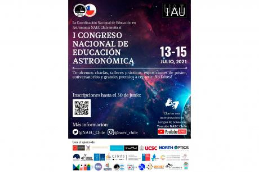 La actividad organizada por NAEC Chile, que se celebrará el 13, 14 y 15 de Julio de 2021, es fomentada por la Oficina de Educación en Astronomía de la Unión Astronómica Internacional (OAE-IAU). Las inscripciones estarán abiertas para los interesados hasta el 30 de junio.