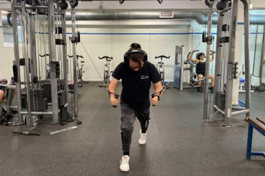 El taller deportivo de acondicionamiento físico con sobrecarga, que se realiza en la sala de pesas del gimnasio EAO, enseña a las y los estudiantes los conocimientos básicos sobre musculación para que puedan preparar rutinas de ejercicios y ejecutarlas en sus casas u otros espacios deportivos.