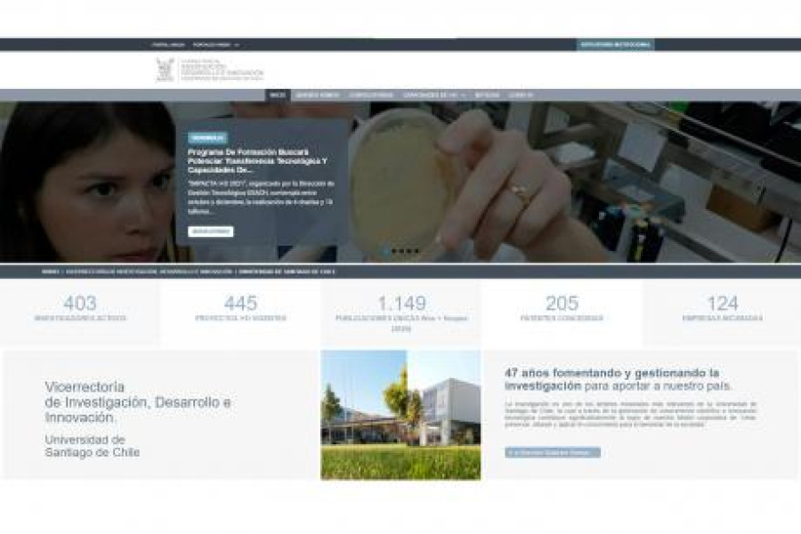 Potenciar y promover el impacto económico, social y ambiental de las investigaciones científicas y tecnológicas que lidera la Universidad de Santiago, será el principal objetivo del nuevo sitio web de la Vicerrectoría de Investigación Desarrollo e Innovación, que ya se encuentra disponible en www.vridei.usach.cl.