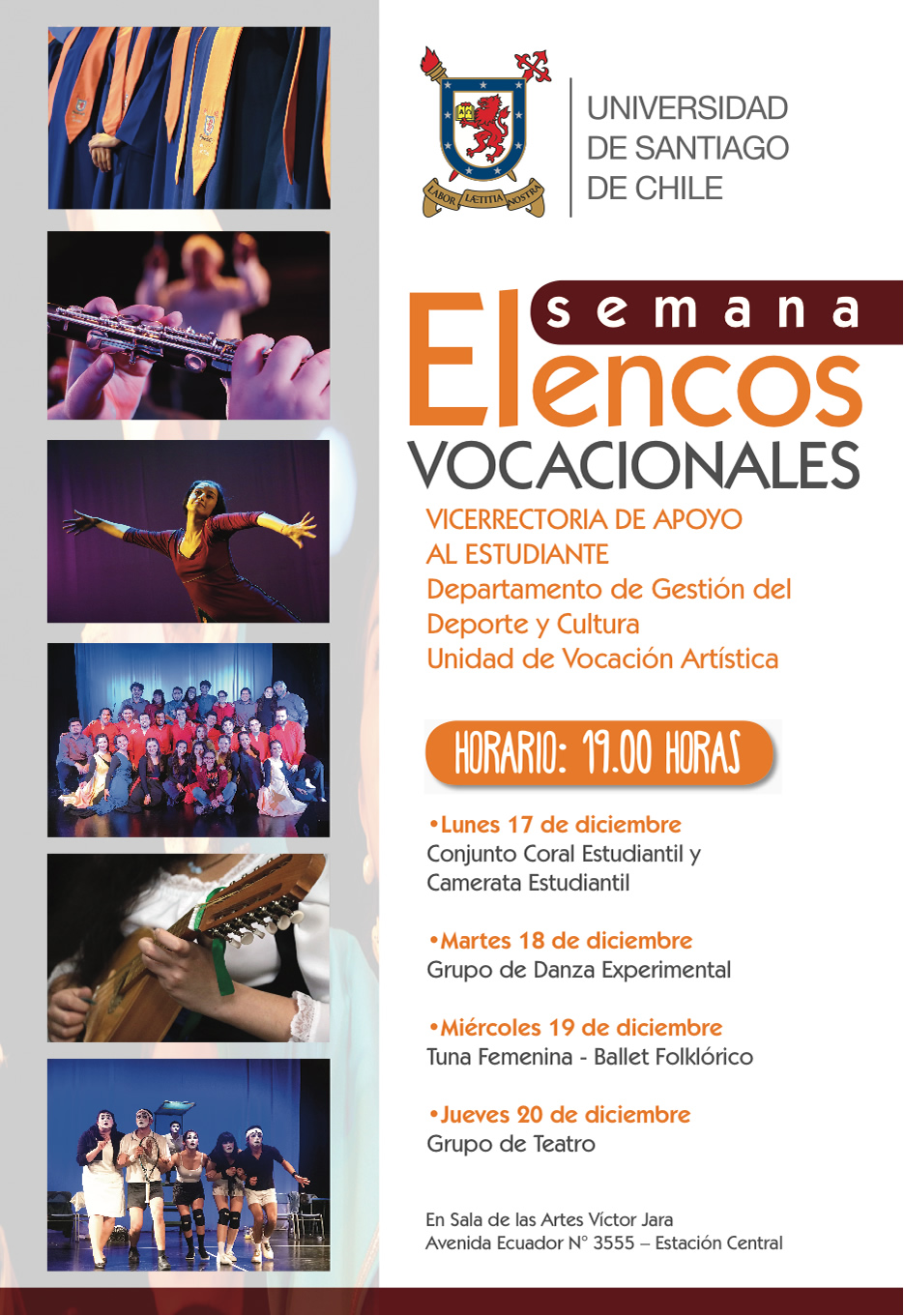 - Miércoles 19 de diciembre: Tuna Femenina Usach y Ballet Folclórico Bafusach