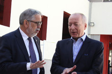El Rector de la Universidad, Dr. Juan Manuel Zolezzi Cid, junto al Presidente del Consejo Nacional de Televisión, Oscar Reyes, quien esta semana deja su cargo, realizaron este martes un recorrido por el estudio, y salas master switch y de edición y programación del Canal Experimental de TV Digital de nuestra Casa de Estudios, ubicado en dependencias del edificio que alberga, también, a Radio U.