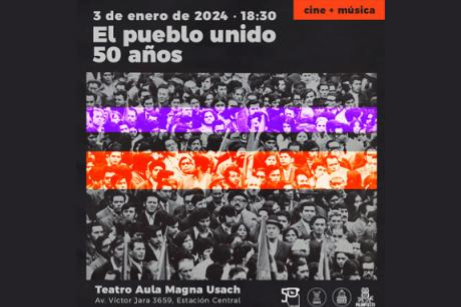 Las múltiples vidas de “El pueblo unido…” serán celebradas el próximo miércoles 3 de enero en el Teatro Aula Magna Usach, con un evento que conjugará cine, conversación y música en vivo, cuyas entradas son gratuitas y se encuentran en Portaltickets.