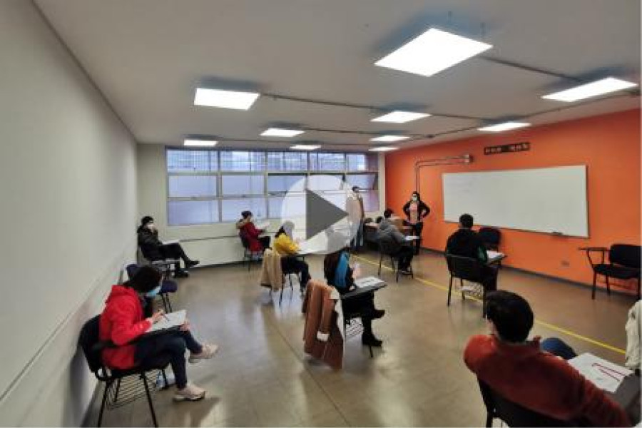 Este examen funciona con veedores externos – uno por sala-, por lo tanto, hubo una delegación que no es de la Usach, y que en este caso proviene de la Universidad de Chile. Son veedores ciegos, es decir que no conocen a los estudiantes. A su vez, el aporte Usach, y está establecido por protocolo del examen. Hay un anfitrión que acompaña al veedor, además de un secretario que colabora con los chequeos de identidad, la lista de firmas y la recepción del pase de movilidad entre otros. De la misma manera, hay un grupo nuestro que participó como veedor en la Universidad FinisTerrae, lo que genera delegaciones cruzadas. Esto forma parte del procedimiento tradicional de la prueba.