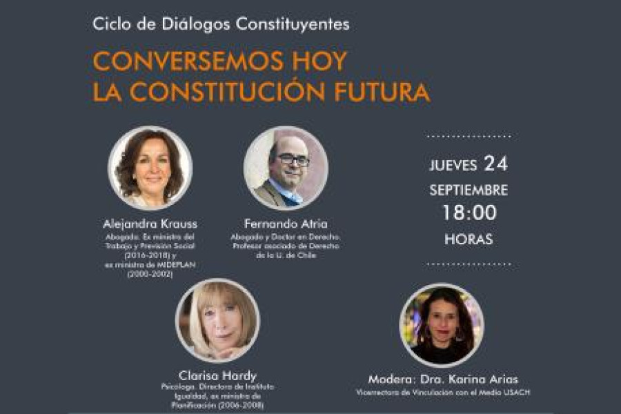 La tercera jornada del ciclo Diálogos Constituyentes “Conversemos hoy la Constitución futura” contará hoy con la participación de la abogada y exministra del Trabajo y Previsión Social Alejandra Krauss; la psicóloga y exministra de Planificación, Clarisa Hardy y el abogado Fernando Atria.