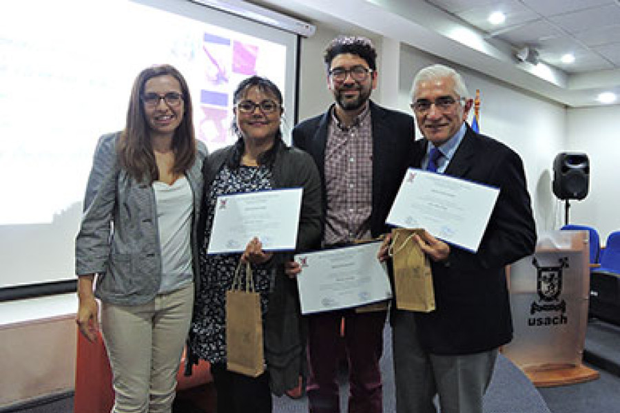 La conmemoración contempló la presentación de proyectos de innovación docente de centros educativos de la red de prácticas y la entrega de reconocimientos para profesores y profesoras de los centros educativos en convenio.La jornada comenzó con las palabras de la Coordinadora General de Prácticas Profesionales, la académica del Departamento de Educación, Andrea Rodríguez, quien destacó el compromiso de nuestra unidad con las y los profesores.“Nos interesa principalmente reconocer y valorar la labor que desarrollan nuestros colaboradores de la formación inicial docente, resaltando el gran aporte a nuestros estudiantes a través de la generosa oportunidad de aprendizaje que les brindan”, aseguró.En la oportunidad, además agradeció la hospitalidad de los centros de prácticas que forman parte de la red, quienes “nos han recibido como buenos anfitriones aceptando el desafío conjunto de formación”.También reconoció la tarea que desarrollan los profesores, supervisores y orientadores, quienes de modo comprometido “acompañan el aprendizaje sobre esta profesión, una de las más nobles y relevantes para la construcción de los sistemas sociales”, reflexionó.Al finalizar, enfatizó en la importancia de la jornada, esperando que “este tipo de iniciativas aporte en la contribución de vínculos que han escogido nuestros profesores en formación, ya que no es fácil empeñarse en la tarea de enseñar a otros, sobre todo en un contexto de constante cuestionamiento de la labor docente”, concluyó. TradiciónEl director del Departamento de Educación, Saúl Contreras, por su parte, destacó que en esta oportunidad se haya decidido concentrar las actividades en una semana a cargo de dos coordinaciones, Educación Básica y Coordinación de Prácticas."Esperamos que se instale como una tradición, y que se haga parte de las actividades que siempre tenemos que conmemorar en esa línea", señaló."Queremos agradecer a los estudiantes, futuros profesores, a los centros de prácticas, a sus directores, jefes de UTP y los profesores que participaron en todas estas actividades y forman a los profesores", agregó."Esperamos que el próximo año esta conmemoración convoque a otros jefes de carrera de otras pedagogías. Vamos a articular actividades que muestren que la Universidad de Santiago no sólo se encarga de celebrar el día de formar profesores y de preocuparse de que la trayectoria formativa sea de calidad, sino que reconoce y valora un hito importante, que es un día en el año dedicado a una profesión fundamental, si es que no la más importante en el desarrollo de un país", concluyó.Innovación docente La segunda parte de la conmemoración, contempló la presentación de dos innovaciones docentes realizadas en centros de prácticas en convenio, lo que después dio paso a una mesa de conversación moderada por el académico del Departamento de Educación y director del Magíster, Daniel Ríos.Se trata de la experiencia docente del liceo José Toribio Medina de Ñuñoa, representado por Josefina Marambio, con la exposición “Proyecto apoyos pedagógicos”; y el liceo Ruiz Tagle de Estación Central, representado por Thomas Walton, con la exposición “Estrategias metodológicas colaborativas”.“Las innovaciones que presento tienen dos elementos, la voluntad y el compromiso de nuestros practicantes, quienes llegan a nuestro establecimiento con una gran inquietud, la de colaborar. Es bajo ese contexto en que surge la innovación de parte de los practicantes”, destacó la profesora Josefina Marambio.Por su parte, el profesor Thomas Walton, resaltó de su experiencia pedagógica el proceso de iniciación en el que “nos encontramos con harto apoyo de los alumnos en práctica de la U. de Santiago, quienes contribuyeron en lograr ciertos aprendizajes de manera significativa, a partir de proyectos de integración de asignaturas “.Finalmente, y en su calidad de moderador, el profesor Ríos enfatizó en las innovaciones realizadas tanto a nivel de aula como pedagógica, calificándolas como explícitas y planificadas.“Una de las cosas interesantes en la función docente es el tema de innovación, ya que detrás de ellas hay problemas que las instituciones reconocen, por lo tanto son propuestas realizadas a partir de ello”, dijo.Entrega de reconocimientosLa conmemoración del Día del Profesor también contempló el reconocimiento a aquellos docentes que acompañan el proceso de práctica de los profesores en formación docente de nuestra Casa de Estudios, los que comprende las pedagogías en Inglés, Castellano, Filosofía, Historia y Ciencias Sociales, Física y Matemáticas y Educación Física.En total fueron reconocidos 24 profesores y profesoras de los 49 centros educativos en convenio, a quienes se les otorgó un diploma y un regalo.Al culmine de la jornada se presentó la Tuna Mayor de la Facultad de Ciencias de la U. de Santiago y el cortometraje “Waldorf 100”.