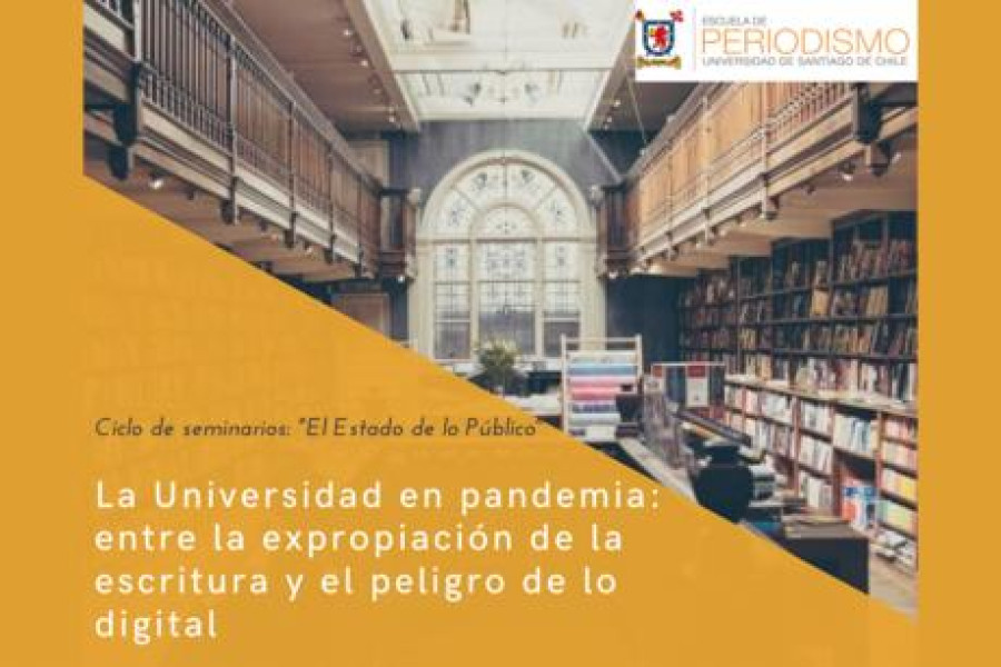 La Escuela de Periodismo perteneciente a la Facultad de Humanidades de la Universidad de Santiago iniciará un  nuevo ciclo de seminarios “El Estado de lo Público”. El primer capítulo de este ciclo se llamará “La Universidad en pandemia: entre la expropiación de la escritura y el peligro de lo digital”, y se realizará mañana  martes 7 de julio a las 11:30 hrs, vía Zoom.