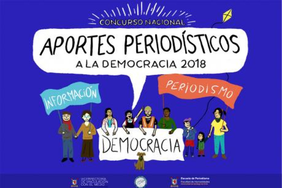 La Escuela de Periodismo junto a la Vicerrectoría de Vinculación con el Medio de la Universidad y el apoyo del Colegio de Periodistas convocan a estudiantes y profesionales de las comunicaciones a participar del Primer Concurso Nacional "Aportes Periodísticos a la Democracia 2018".