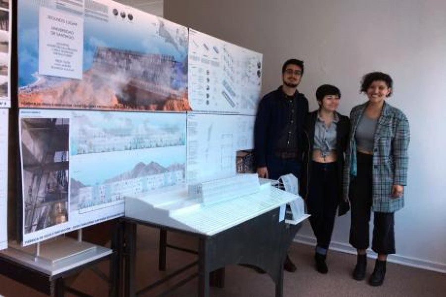 Estudiantes de Arquitectura de la Usach obtuvieron el segundo lugar en el prestigioso concurso nacional Cap 2019, dirigido a alumnos de esta carrera. Se trata de Oriana Flores Loyola, Carla González Lizana y André Dalgalarrando Gajardo, quienes cursan quinto año y que fueron acompañados por el profesor Rodrigo Aguilar.El certamen, que se realiza desde 1986, es financiado por la Compañía de Acero del Pacífico y busca poner en valor las propiedades del acero e introducir a los estudiantes en las particularidades de su diseño.“Para nosotros siempre es un orgullo representar a la Escuela en competiciones externas y también nos permite evaluar el trabajo docente que se hace en la Usach y medirlo con otros planteles”, sostiene el académico y profesor guía del grupo ganador, Rodrigo Aguilar.Núcleo hídricoLos jóvenes forman parte del Taller de Diseño Arquitectónico, que busca integrar los conocimientos y habilidades que han cultivado los estudiantes de primero a cuarto año, y prepararlos para enfrentar proyectos de complejidad media y alta.El Taller está compuesto por tres secciones. Durante el primer semestre, todos los alumnos participan en competencias y este año fue el caso de CAP y Corma.La Escuela de Arquitectura es parte del concurso de la Compañía de Acero del Pacífico desde 2008. El tema del presente año fue diseñar una Fábrica de Ideas e Innovación.El grupo que se quedó con el segundo lugar propuso un proyecto basado en el problema de la escasez hídrica en el país y el mundo. “Queríamos dar soluciones a un problema real”, sostuvo la estudiante Carla González.“Núcleo Hídrico” es el nombre de la iniciativa que consiste en el diseño del edificio de un Centro de Innovación, cuya fachada es capaz de captar la camanchaca. Ésta se condensa en una malla, pasa por un proceso de limpieza y es inyectada a la red comunal.“Escogimos Alto Hospicio, en el norte de Chile, porque es una localidad empobrecida y con una gran estigmatización social. Pensamos que era un buen lugar para generar un impacto y apoyar a la comunidad”, explica Oriana Flores.Para André Dalgalarrando este es el resultado del sello de la Escuela que “redunda en lo social y en lo técnico. A diferencia de otras Universidades, nos especializan en solucionar problemas urbanos, comunales y sociales”, declara.