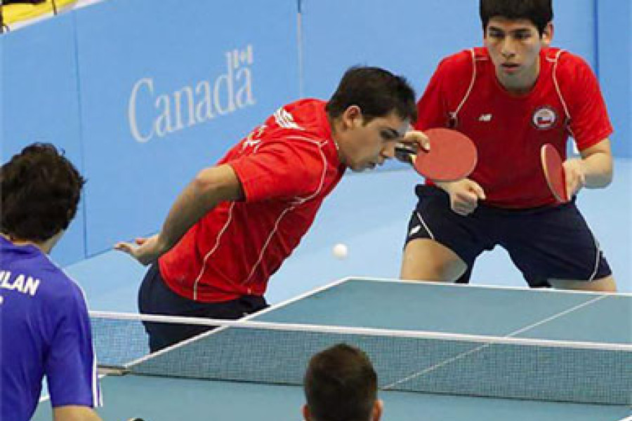 Como “días extraordinarios” han calificado su permanencia en Toronto los estudiantes Manuel Moya Maureira y Gustavo Gómez Hernández, de la Facultad Tecnológica, competidores en Tenis de Mesa, y Jorge Acevedo Bravo, de la Facultad de Administración y Economía (FAE), en la especialidad de Karate. El trío destaca la valiosa posibilidad de compartir con otros deportistas de clase mundial, lo que representa una instancia de aprendizaje y desarrollo personal. Cabe recordar que la versión de este año de los Juegos Panamericanos considera 41 países en competencia. (En la fotografía de izq. a der., ambos de rojo) Manuel Moya Maureira y Gustavo Gómez Hernández, de la Facultad Tecnológica, competidores en Tenis de Mesa.