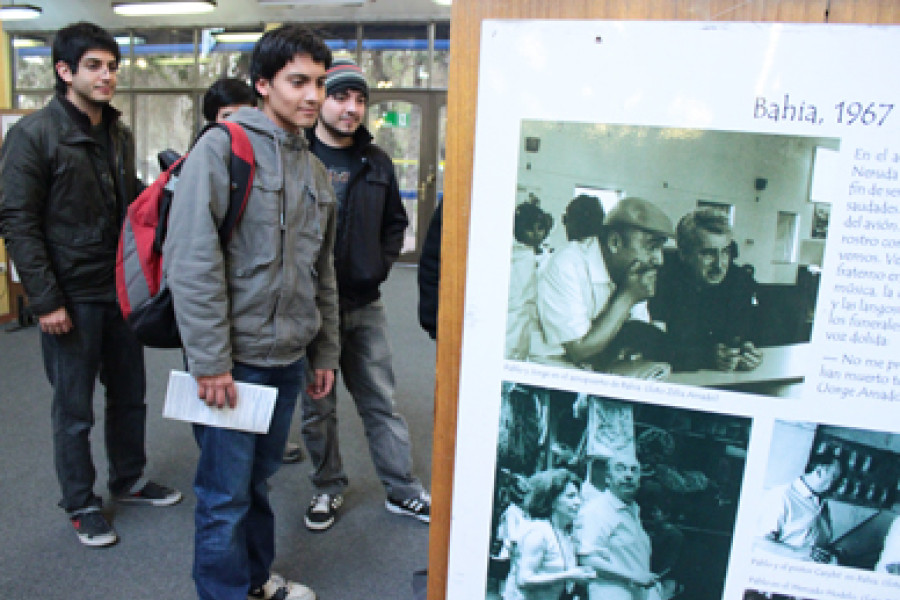 Desde este lunes (13) la comunidad universitaria puede apreciar la exposición "Neruda-Amado", en la Biblioteca Central, iniciativa coordinada por el profesor Raúl Thoms, y que se enmarca en las actividades conmemorativas del centenario del nacimiento del escritor Jorge Amado (1912-2001).Amado y Neruda, grandes exponentes literarios de Brasil y de Chile, desarrollaron una sólida amistad que duró por décadas, hasta la muerte del poeta chileno en el 1973. La muestra busca retratar su relación, a través de fotos, historias personales, relatos de viajes, su participación en el partido comunista, poemas y homenajes recíprocos.Organizada por la Fundación Casa de Jorge Amado, de Salvador (Brasil), esta exhibición será presentada con el patrocinio del Centro Cultural Brasil-Chile de la Embajada de Brasil. Permanecerá abierta dos semanas, hasta el viernes 24 de este mes, en horario de atención de la Biblioteca Central.Muestra de libros en el Parque AraucoEl profesor Thoms también está coordinando una muestra de libros de Jorge Amado, que se inició este viernes en la Librería Antártica del Parque Arauco. En el local, hay un espacio donde se exhiben libros del autor, en portugués y español, además de objetos alusivos a Bahía y a Brasil en general, cortesía del Centro Cultural Brasil-Chile.