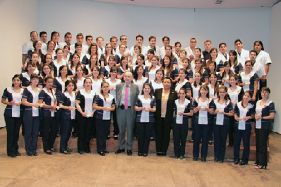 En una ceremonia realizada recientemente en el Aula Magna de nuestra Universidad, la Escuela de Enfermería tituló a una nueva generación de enfermeras y enfermeros quienes acompañados de sus familias, hicieron el Juramento Profesional.En el evento, el decano de la Facultad de Ciencias Médicas, Dr. Humberto Guajardo, agradeció a los académicos por su compromiso con la educación y a los estudiantes “por haber preferido esta Universidad para estudiar” y los instó “a hacer frente a los desafíos que vienen con el sello social que caracteriza a nuestra Casa de Estudios Superiores”.Por su parte, la directora de la Escuela de Enfermería, Marta Maturana, dijo a los jóvenes que “este es un día que marca sus vidas, hoy ustedes son más que egresados, son profesionales de la Enfermería”.Asimismo, la máxima autoridad de la Escuela, instó a los nuevos titulados a mantener el vínculo con su Alma Mater y a “llevar en sus corazones los valores y el escudo de la U. de Santiago. Siéntanse orgullosos de su formación”, subrayó.La presidenta del Centro de Estudiantes de Enfermería, Sofía Carreño, coincidió con las palabras de la directora Maturana, quien señaló: “ustedes son líderes innatos, demuestren lo bueno que son y jamás olviden su origen”.En la ceremonia recibieron reconocimientos las estudiantes Denisse Hidalgo Sandoval, premiada como Mejor Estudiante de la Generación 2012 y Fabiola Calquín, reconocida por la Fundación de Egresados y Amigos (Fudea) por su compromiso con nuestra Casa de Estudios.Luego de la presentación de la tuna femenina de la Facultad de Ciencias Médicas, y tras recibir sus respectivos certificados, las nuevas enfermeras y enfermeros de la U. de Santiago pronunciaron el juramento de Florence Nightingale, pionera de la enfermería moderna, manteniendo cada uno en sus manos una lámpara encendida, ante la mirada emocionada de sus familiares y amigos.