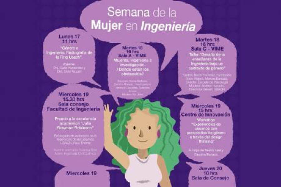 La Facultad de Ingeniería de la Universidad de Santiago de Chile en su afán de instalar las primeras discusiones sobre género e ingeniería, dio inicio a la Semana de la Mujer en Ingeniería, sumándose a los esfuerzos por equilibrar la balanza entre hombres y mujeres existente en varias de sus carreras para la construcción de una mejor sociedad del conocimiento.Dicha semana, del 17 al 21 de junio, se da en el marco de la conmemoración del Día Internacional de la Mujer en la Ingeniería, creado por la Women’s Engineering Society. De esta manera, esta Unidad Mayor se une a esta instancia internacional para posicionar parte de su política de vinculación con el medio, asociada a consolidar y proyectar interna y externamente la cultura de género en el desafío de la formación de las futuras ingenieras de la Universidad de Santiago de Chile.Para ello, la Facultad ha organizado una serie de actividades con el fin de visibilizar el rol de la mujer en un ambiente donde en el pasado han predominado los hombres, y cuyo foco estará centrado en el aporte de las ingenieras a la matriz productiva del país.“Queremos entregarle a Chile más ingenieras con liderazgo y que sean un aporte a la resolución de problemas, fortaleciendo su rol social, el cual es el sello de nuestra Universidad”, sostuvo el Decano de la Facultad de Ingeniería, Juan Carlos Espinoza Ramírez.Las actividades partieron ayer con un diagnóstico sobre Ingeniería y género dictado por la Dra. Carla Hernández del Departamento de Física de la Usach.Para hoy está programado el seminario “Mujeres, Ingeniería e Investigación. ¿Dónde están los obstáculos?", que se realizará a las 16:00 horas en la Sala A de la Vicerrectoría de Vinculación con el Medio de la Usach; y el taller “Desafíos de la enseñanza con perspectiva de género en el escenario público”, donde están invitados jefes de carrera, académicos y coordinadores de asignatura, entre otros públicos objetivos.Para el miércoles está fijada la premiación “Julia Bowman Robinson”, que distinguirá la excelencia académica de la estudiante Romina Soto María, de Ingeniería Química. Y también estará el workshop “Experiencias de usuarios con perspectiva de género a través del design thinking” en el Centro de Innovación de la Facultad. A su vez, los departamentos de la Facultad realizarán jornadas intradepartamentales.El jueves se realizará el lanzamiento “#MujeresFing: nuestras embajadoras en el mundo empresarial”.Finalmente, el viernes está programado, en el Salón de Honor de nuestra Casa de Estudios, el seminario “Más ingenieras, Más desarrollo. Revalorizando nuestro rol en la economía” y la presentación del “Taller de empowerment de mujeres estudiantes de Ingeniería: aprendiendo técnicas y estrategias para los procesos de toma de decisiones”.La Vicedecana de Docencia de la Facultad de Ingeniería, Dra. Rosa Muñoz Calanchie, enfatizó que es “muy importante relevar el rol de las mujeres en ingeniería de manera tal que nuestras alumnas se sientan motivadas y tengan además un referente, un horizonte, de lo que ellas pueden lograr por el hecho de estar estudiando una carrera de ingeniería”.La Vicedecana agregó que “en la práctica, en nuestra Facultad, el ingreso de mujeres, especialmente en algunas carreras, es muy bajo. Son indicadores que nosotros queremos cambiar. Queremos hacer que haya más mujeres alumnas de la Facultad, idealmente en todas las carreras, y por lo tanto una manera de llegar a este público es mostrar que las mujeres son un aporte significativo y se pueden realizar estudiando una carrera como las carreras de ingeniería”, concluyó.
