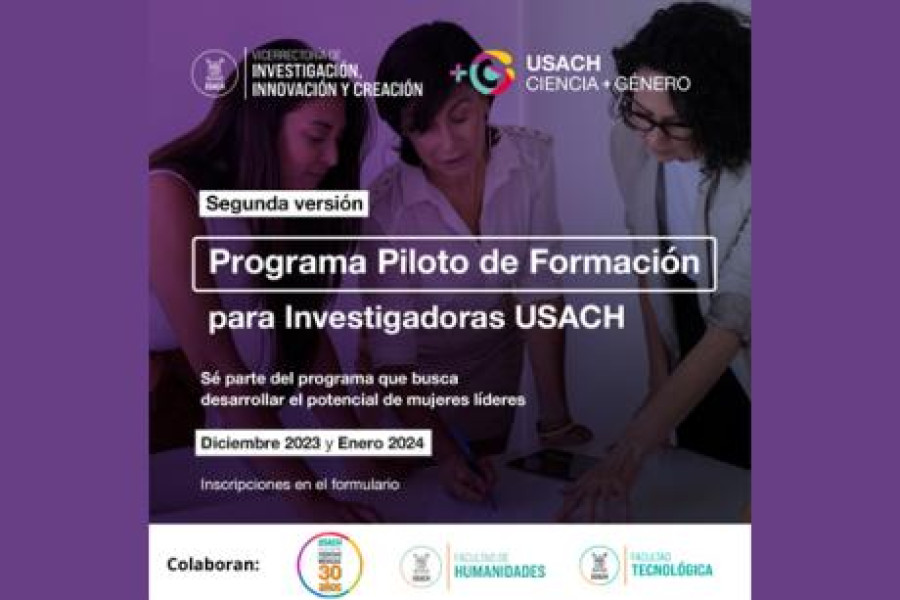 Con el objetivo de potenciar las habilidades de liderazgo de las investigadoras de la Universidad de Santiago de Chile, es que la Vicerrectoría de Investigación, Innovación y Creación, a través del proyecto InES Ciencia + Género, anunció la apertura de inscripciones para la Segunda Versión del Programa Piloto de Formación para Investigadoras Usach.