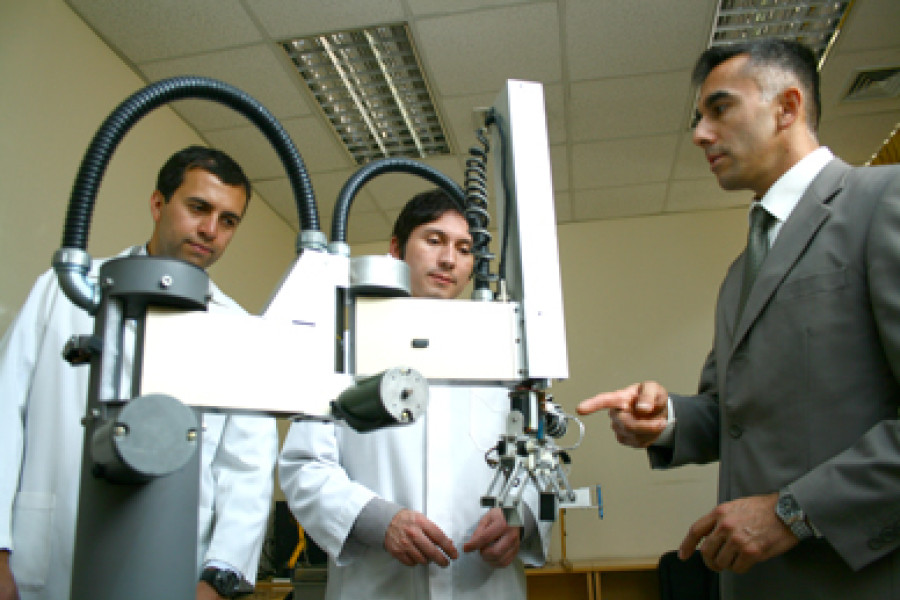 En el marco de una nueva línea investigación, impulsada por la U. de Santiago, se inscribe el diseño, construcción e implementación de un manipulador robotizado, sistema que aún cuando presente fallas, funcionará de manera ininterrumpida. El manipulador está orientado para operar en ambientes industriales y mineros, y podría constituirse en un complemento a la fuerza laboral en esas áreas.Se trata del proyecto “Diseño e Implementación de un Nuevo Manipulador Robótico Redundante de 7 GDL para Sistemas Mineros e Industriales Tolerantes a Fallas”, recientemente adjudicado a través del Primer Concurso de Ciencia Aplicada Fondef y en el que trabaja el Dr. Claudio Urrea, académico del Departamento de Ingeniería Eléctrica de nuestra Universidad.El Dr. Urrea explicó que esta propuesta de innovación científica-tecnológica surge de la necesidad de contar con manipuladores industriales robotizados de redundancia mecánica y de auto-reconfiguración, para que estos sistemas puedan seguir funcionando sin la paralización forzada de las faenas, pese a determinadas fallas que se produzcan en línea.“El término GDL corresponde a la sigla de Grados De Libertad, lo que le da independencia a los elementos constitutivos del robot para desplazarse unos respecto de otros. Esto abre las posibilidades para que, aún cuando algunos eslabones del mecanismo se bloqueen, el manipulador se posicione y oriente, en forma automatizada, en el lugar de trabajo especificado por el usuario”, explicó el académico.Según indicó, la etapa más compleja del proyecto es la parte teórica, ya que ésta no sólo incluye el diseño, simulación y análisis del comportamiento del robot, sino también las pruebas y validaciones de las propuestas de controladores, tolerantes a fallas, que también serán diseñadas por el estudio y que regirán el comportamiento del robot. Para ello, se comienza por una modelación matemática representativa del robot físico, que permitirá tener la certeza que el sistema mecánico y de control funcionará.La relevancia de esta propuesta es que con ella se está entrando al mercado nacional y mundial con soluciones tecnológicas y comerciales nuevas en el área. Además, se abrirá un nicho de trabajo para muchas personas preparadas para desarrollar e implementar tecnología robótica.Para el investigador de nuestra Universidad, es importante difundir en forma periódica los resultados teóricos-prácticos parciales que se vayan obteniendo, ya que “es necesario que la gente se empiece a dar cuenta que en Chile podemos producir tecnología de punta de acuerdo a nuestras propias realidades y necesidades, validando de este modo nuestro trabajo”, recalcó.El producto podrá utilizarse en múltiples instituciones, “no solamente para trabajar en empresas mineras e industriales, sino también en universidades, institutos o fábricas, que quieran hacer desplazamientos de elementos, cortes láser, entre otras funciones”.El equipo de trabajo del Dr. Urrea está conformado por especialistas en las áreas de la robótica, control automático, ingeniería mecánica, programación, etc., como por ejemplo, el académico M.Sc. John Kern, director interno del proyecto, además de tesistas de pregrado y postgrado.