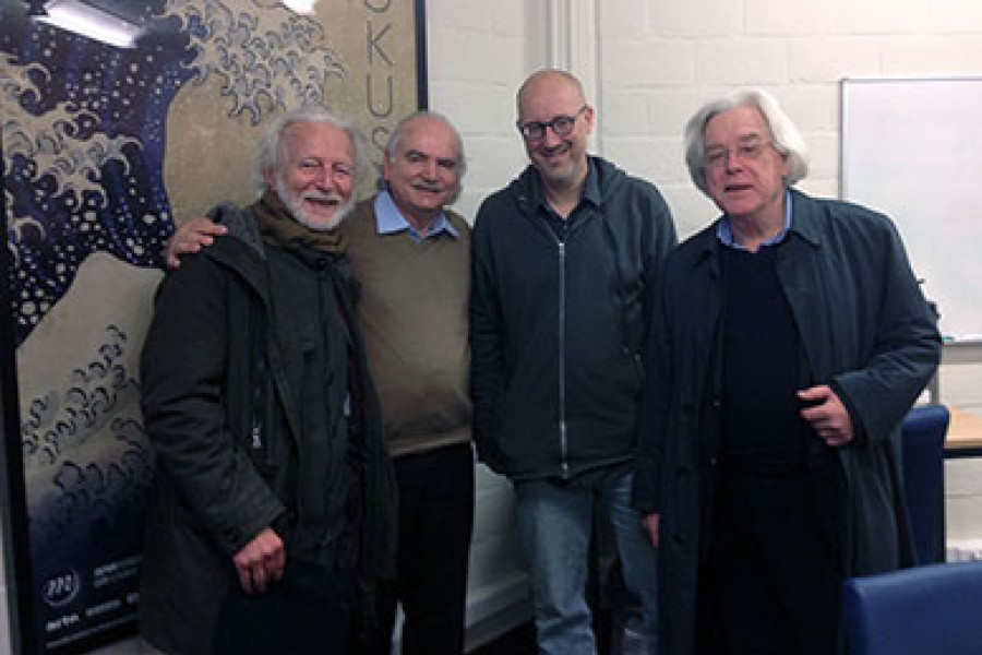 El académico realizó un conjunto de actividades académicas e investigativas durante octubre y noviembre en esa universidad europea que fue fundada en 1425, convirtiéndose en la más grande y mejor posicionada de Bélgica, y una de las más antiguas y prestigiadas de Europa. En la fotografía, de izquierda a derecha, los académicos Guy Bajoit, el Dr. Parker, Olivier Servais y Jean-Pierre Hiernaux.