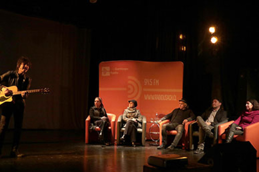 El lanzamiento de la nueva apuesta radial de nuestro Plantel que potencia el apoyo que esta radioemisora brinda desde el 2013 a bandas y solistas emergentes y consagrados, tuvo la modalidad de un programa de radio a cargo de los conductores de Escena Viva, Muriel Riveros y Pablo Medel, quienes conversaron con el presidente de la SCD, Álvaro Scaramelli, la directora de la Radio Gabriela Martínez y la vicerrectora Karina Arias. El joven cantautor Diego Peralta puso la nota musical en un ambiente de gran cercanía entre los asistentes provenientes del mundo de la industria musical, la cultura y las artes.