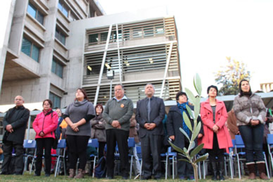 El patio de la Facultad de Ciencia ya no es el mismo. Pareciera que en la tierra fecunda donde habita el verde, corre savia nueva, revitalizadora. Y es que desde el jueves (23) pasado, la nostalgia y el respeto con tinte de esperanza, reconstruyen el emplazamiento. 81 nóveles olivos, ornamentan el lugar y homenajean a mujeres y hombres; estudiantes, profesores(as) y funcionarios(as) de nuestra Universidad, que entre los años 1973 y 1976 fueron asesinados(as) y/o desaparecidos(as) por la violencia de Estado.La iniciativa corresponde al ‘Memorial por la Dignidad’, monumento impulsado por la Corporación Solidaria UTE- U. de Santiago y que fue inaugurado en presencia de autoridades universitarias, representantes de agrupaciones de derechos humanos y una amplia convocatoria estudiantil.La ceremonia fue encabezada por el Vicerrector de Vinculación con el Medio (VIME), Doctor Sergio González Rodríguez y  el Presidente del la Corporación Solidaria UTE- U. de Santiago, Emilio Daroch Fernández. Además contó con la destacada participación del Decano de la Facultad de Humanidades, Marcelo Mella Polanco; la presidenta de la Federación de Estudiantes (Feusach), Marta Matamala Mejía; la presidenta de Agrupación de Familiares de Ejecutados Políticos, Alicia Lira Matus; la presidenta de la Agrupación de Exonerados Políticos de la UTE, Luz Cruz e Hylenia Hartog García, abogada del Programa de Derechos Humanos del Ministerio del Interior y Seguridad Pública.Sentidos discursosJunto con celebrar la iniciativa, el Vicerrector de Vinculación con el Medio, Dr. Sergio González, valoró la siembra de olivos como un acto reivindicatorio que va ligado con la tarea que nuestra Corporación se ha trazado respecto a rescatar el legado de personas y grupos han bregado por la democracia y los derechos humanos.“La universidad existe para sembrar y cultivar conocimiento. Lo hemos dicho y lo reiteramos porque la plantación de un árbol es símbolo de nuestro quehacer académico; y, en este caso, de nuestra defensa de la memoria y del recuerdo de quienes cayeron cuando también fue asesinada la democracia”, declaró.“Estos olivos tienen como objeto honrar la memoria de quienes caminaron por estos mismos prados  de nuestra universidad y fueron víctimas fatales de la represión estatal de la dictadura”, añadió el Vicerrector González.Por su parte la Presidenta de la Federación de Estudiantes de nuestra Casa de Estudios, Marta Matamala, destacó la entrega e integridad de quienes fueron silenciados por el uso ignominioso de las armas.  “Ustedes saben mejor que nadie, los niveles de convicción que tenían quienes fueron asesinados durante la dictadura y los primeros años de ella”, dijo haciendo un exhorto a la emoción de quienes presenciaban el acto.Como un “acto emotivo”, calificó la instancia el presidente del la Corporación Solidaria UTE- U. de Santiago, Emilio Daroch, quien estimó que el memorial, va a permitir a las generaciones que transiten por nuestra Corporación que tengan presente el pasado para construir el futuro.Los patios donde descansan los 81 olivos, constituyen “un lugar donde los estudiantes se juntan, se sientan en el verano y desde ahora, van a estar  rodeados de estos compañeros que son parte de la historia de la Universidad”, señaló Daroch evocando el gran simbolismo que tiene el espacio.El monumentoEl olivo, árbol escogido para albergar los honores- cree el Vicerrector Sergio González- es perenne, representa la fuerza que no sucumbe ante la adversidad y es testimonio claro e imperecedero de la grandeza humana.“Como nuestros estudiantes de siempre, el olivo siempre tiene hojas, son perennes y pueden resistir la adversidad con fuerza. (..)Honremos, entonces, este lugar de memoria, de dignidad, un lugar donde estudiar y conocerse; en este campus único que es nuestra responsabilidad”, concluyó.Para  Emilio Daroch el objetivo del monumento, sigue dando cuenta de la historia. Y es que en el 2013, nuestra Institución tituló de forma póstuma a 39 estudiantes asesinados y/o desaparecidos, aunque muchos quedaron sin tal reconocimiento producto de que se perdieron sus registros en el año 1981, tras el desmembramiento de la Universidad Técnica del Estado y su circunscripción exclusiva a la Región Metropolitana.“Hay muchos estudiantes que eran de la sede de Antofagasta, de Copiapó, La Serena, Concepción, Punta Arenas. Como esas sedes fueron absorbidas por otras universidades, no logramos establecer la información clara”, expone Daroch. Por eso, el ‘Memorial por la Dignidad’ que comprende a ex estudiantes de todo el país, es un acto reivindicatorio de gran valor histórico.El futuroEmilio Daroch adelantó los planes que su agrupación tiene para el memorial. En esa línea comentó que se contempla la instalación de una gran placa conmemorativa con la frase “Memorial por la Dignidad”. Asimismo, se vislumbra que haya un mapa donde se estipule la posición de cada uno de los olivos y respectivamente a quién homenajea. Por último, y no menos importante, que el plano sea parte de la ruta que cada 11 de septiembre se realiza de modo interno en la universidad.