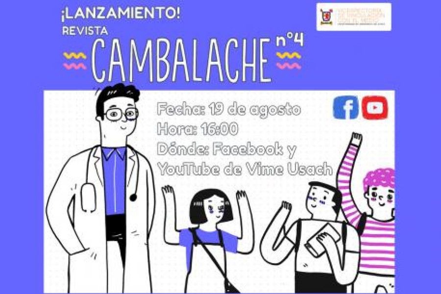 El lanzamiento del cuarto número de la Revista Cambalache se realizará de manera online el jueves 19 de agosto a las 16.00 horas, a través de las redes sociales (YouTube y Facebook) de la Vicerrectoría de Vinculación con el Medio de la Universidad de Santiago de Chile.