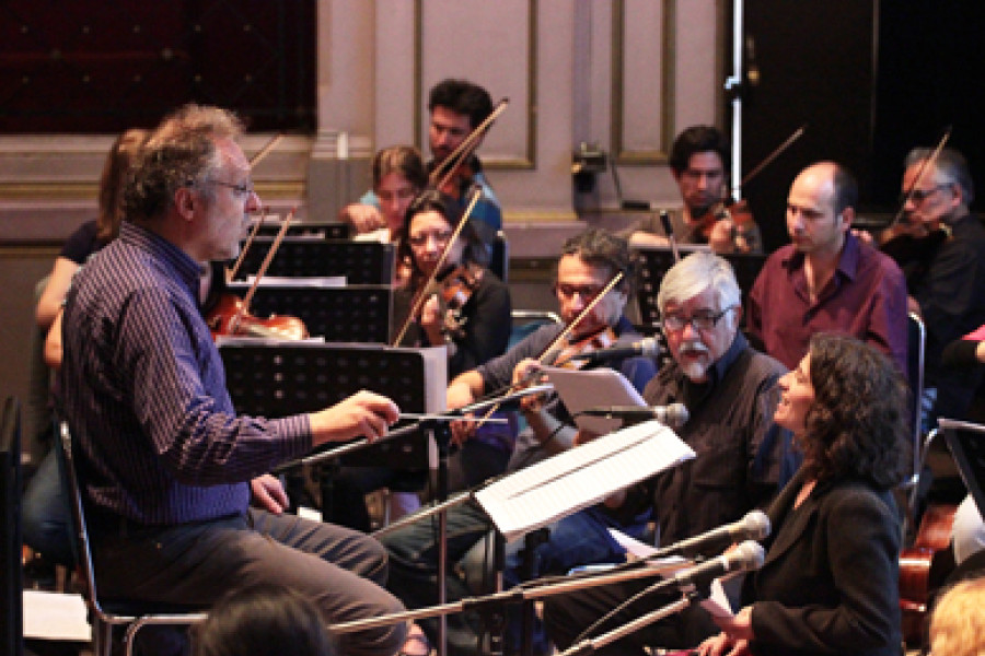 La tarde de ayer, el Aula Magna se llenó con la música de más de 50 intérpretes de la Orquesta Clásica de la U. de Santiago junto a Jorge Coulon, Magdalena Matthey y Evelyn Cornejo. Fue uno de los últimos ensayos con miras a las dos presentaciones del concierto Víctor Jara Sinfónico que se realizarán el domingo (27) en el Teatro Municipal de Santiago y el miércoles (30) en el Aula Magna.El director titular de la Orquesta, maestro Nicolas Rauss sostuvo que “lo mas complejo ha sido tratar de entender la manera de zambullirse en la música que tienen los cantantes del canto popular y folclórico, como Víctor Jara. Es una forma muy distinta a la de nosotros, los músicos clásicos”.Sin embargo, el director no tuvo problemas para interiorizarse en las melodías, “porque la música de Víctor Jara me parece muy natural, y ha sido una buena cosa, porque yo no lo conocía”.La poesía del cantanteJorge Coulon, integrante del grupo Inti Illimani, es uno de los solistas invitados y a su juicio, la música del cantautor es perfecta en su simplicidad, pero este tipo de eventos “muestra la capacidad de hacer distintas interpretaciones de su obra, su ductilidad y extraordinaria riqueza. Sus canciones resisten perfectamente el tratamiento”.Magdalena Matthey, por su parte, rescata “el encuentro con los pares. Es bonito compartir a Víctor cantando con ellos, sobre todo por la profundidad que tienen sus letras”. Mientras que la otra voz femenina, Evelyn Cornejo, reconoció que le ha costado un poco enfrentarse a una sinfónica, “pero estoy muy agradecida por el honor que me hicieron al invitarme a participar en este trabajo y poder compartir con los demás músicos”. El cuarto artista invitado es Roberto Márquez, de Illapu, que no pudo asistir a este ensayo por motivos de salud.Para los integrantes de la Orquesta Clásica se trata de la segunda vez que presentan este trabajo. “Pero toma un significado especial, por los 40 años de conmemoración y hemos trabajado bastante”, contó el oboísta Aldo Riveros. El intérprete agregó que un punto complejo ha sido equilibrar las voces con el sonido de los instrumentos, ya que para él “la parte vocal debería ser protagonista, porque el trabajo poético y lírico de Víctor Jara es muy importante”.Celebración en la EAOSe espera que el concierto que se realizará el miércoles 30, a las 19 horas, en el Aula Magna, sea un gran evento. Están invitados todos los miembros de la comunidad universitaria y los vecinos del sector. Pero, como posiblemente no todo el mundo pueda entrar, se instalarán pantallas en el patio de la Escuela de Artes y Oficios para seguir el espectáculo. “El miércoles cerraremos la conmemoración de los 40 años del quiebre institucional que la Universidad ha llevado a cabo como parte de su duelo”, sostuvo el vicerrector de Vinculación con el Medio, Dr. Sergio González, quien espera una gran asistencia a ambas instancias.La directora ejecutiva de la Fundación Víctor Jara, Gloria König, también estuvo presente en el ensayo y reconoció el valor que reviste este concierto en la EAO. “Es una apuesta súper potente la que está haciendo la Universidad de Santiago y creo que el trabajo que han hecho la Orquesta y el Coro es notable. Estar aquí en la Universidad, que es prácticamente el último lugar de vida de Víctor, siento que tiene un sentido muy profundo y emocionante”, comentó.