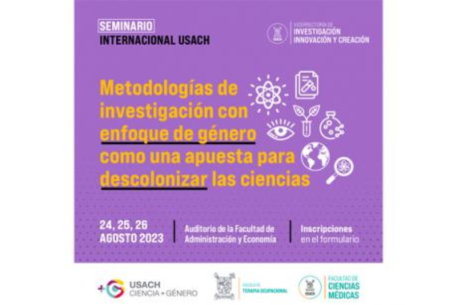 La Vicerrectoría de Investigación, Innovación y Creación, a través del proyecto InES Ciencia + Género en colaboración con la Facultad de Ciencias Médicas y la Escuela de Terapia Ocupacional Usach, invitan a participar del Seminario internacional: “Metodologías de investigación con enfoque de género como una apuesta para descolonizar las ciencias”.