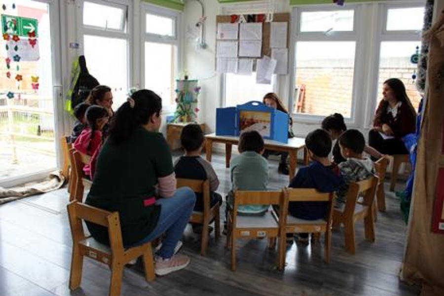 El segundo objetivo de este proyecto es acercar a las infancias magallánicas al patrimonio cultural de su región, a través de un kamishibai, o teatro de papel, denominado "El Fin del Mundo no cabe en una maleta", que aborda la experiencia de dos hermanos que, por motivos familiares, deben partir de su campamento ubicado en la isla de Tierra del Fuego.