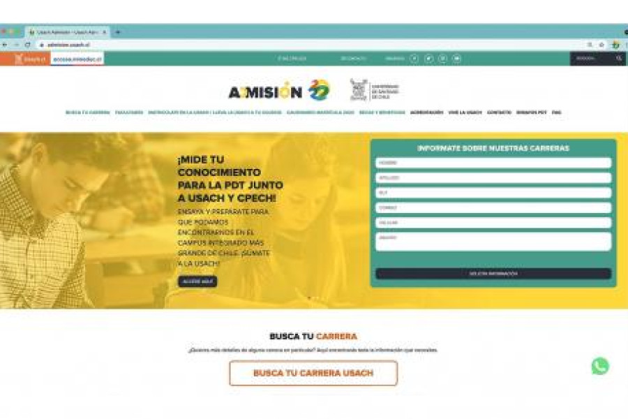 Postulaciones, vías de ingreso y cientos de opciones de carreras. Todo esto puede marear a simple vista y sobre todo cuando nos encontramos ad portas de tomar una de las decisiones más trascendentales de nuestra vida. Es por esto que, desde la Universidad de Santiago de Chile, decidimos renovar nuestro portal https://admision.usach.cl.